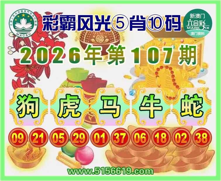 107期:『彩霸风光』 ☝️⑤肖⑩码☝️【狗虎牛蛇】开:马49准上榜高手
